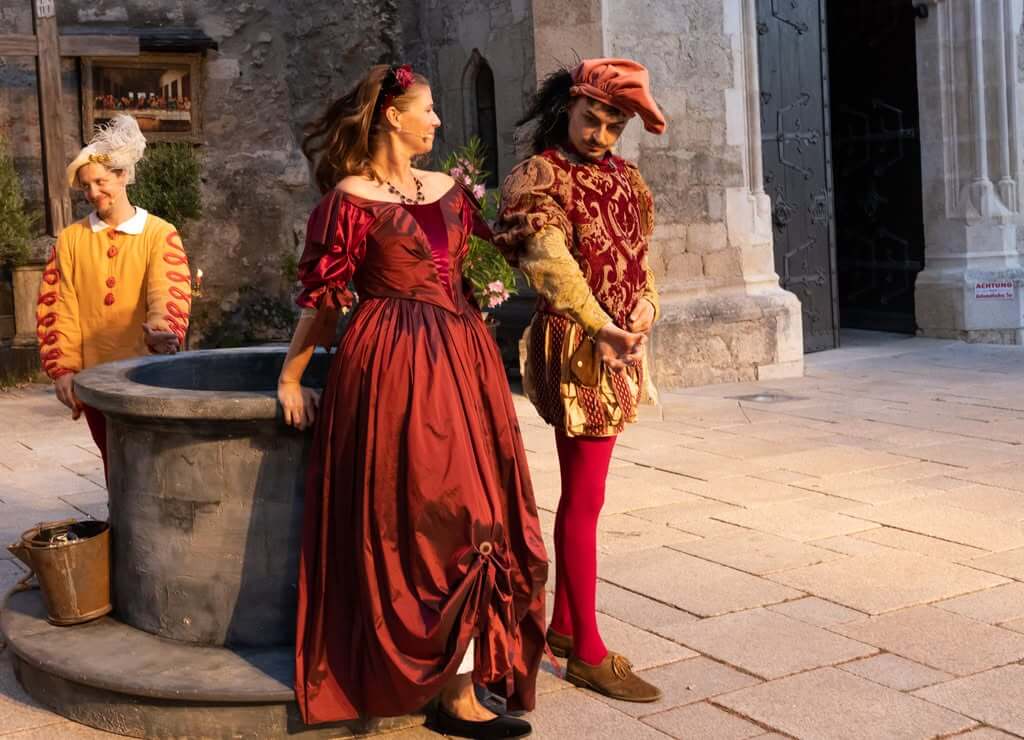 Eine großartige Inszenierung vor der schönen Othmarkirche. Die Schauspieler mit toller Leistung in klarer, alter Sprache, der Sänger hat die Musik sorgfältig und passend dazu ausgewählt, das Bühnenbild wurde von Gabi und Andi mit Liebe zum Detail gestaltet.